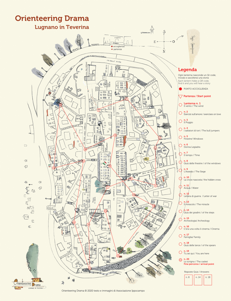 Il percorso-gioco è segnato in un’originale e specifica mappa, vi sono indicate le venti tappe, che chiamiamo ‘lanterne’, disseminate nel percorso. Ognuna contiene una storia, svelata all’apertura del Qr code.