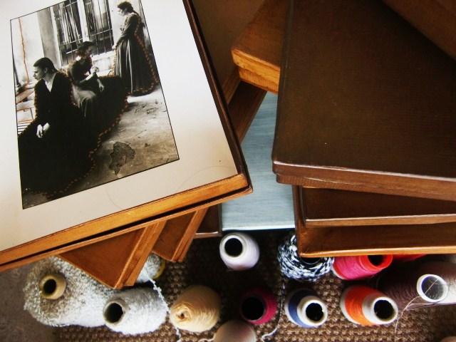 Raccolta Demoni_filo 1991-2004 (fotografia analogica su carta baritata, filo, scatole, micio)