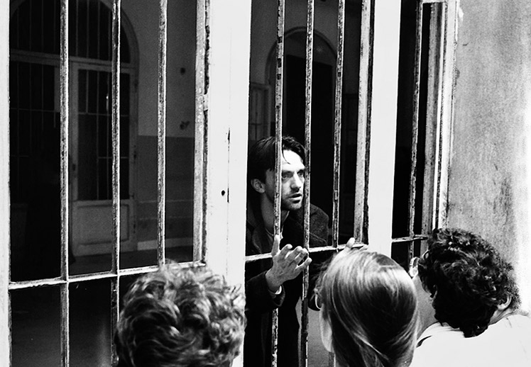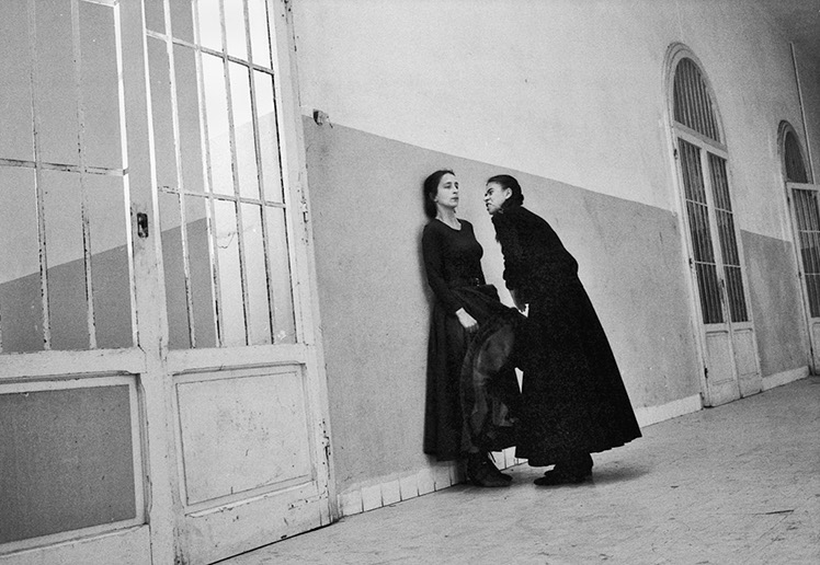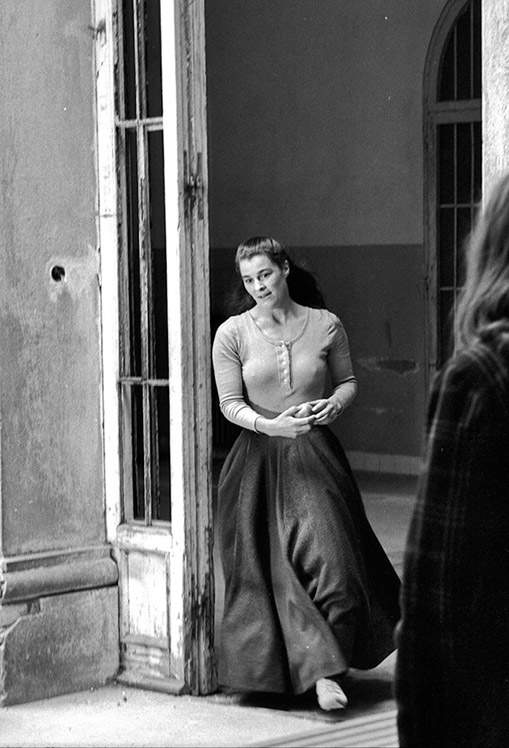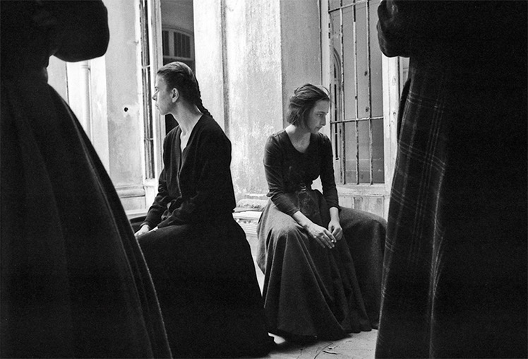 Volterra Teatro Festival. Tre studi per I Demoni, di Thierry Salmon, è un lungo corridoio in cui rimbalza violenta la luce, è un’eco luminosa che riflette, di specchio in specchio, sole e ombra naturali. Gli attori attraversano lo spazio più e più volte, sono voce e corpo, aria e scalpiccio di piedi, le grandi vesti imprigionano polvere, odore di mele e fieno. Così le storie ispirate dal romanzo di Dostoevskij si rincorrono e rimbalzano tra il lungo corridoio e fuori, nel giardino, sosta e concentrazione dove il personaggio si confonde con l’interprete. Io fotografo la scena, poi chiedo e ottengo di tornare il giorno dopo, non tra il pubblico, ma nel ‘backstage’, in quel giardino ormai incolto di un ex ospedale psichiatrico dove gli attori di uno spettacolo che non scorderò mai sono pronti ad accoglierti, a farti strada, come fossero lì da sempre. Fotografo, cercando di farmi ombra lieve, di respirare insieme a loro. Da allora, questa esperienza ha accompagnato la mia scrittura, nel teatro e nella fotografia, ha aperto il mio sguardo in direzione poetica e visionaria, in cerca di luce e movimento. Oggi è una storia fotografica che dedico al lavoro di Thierry Salmon.