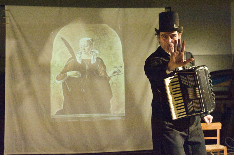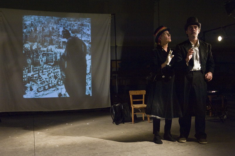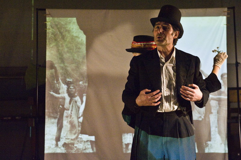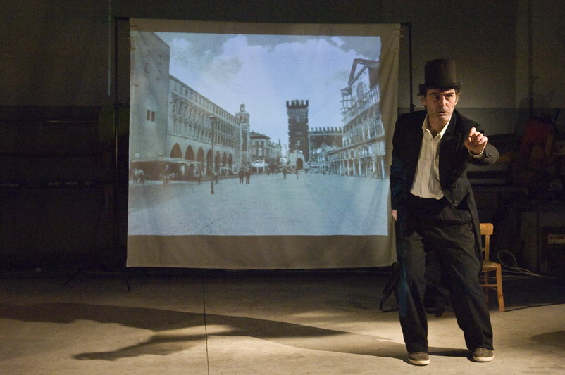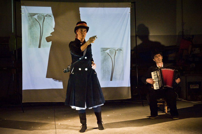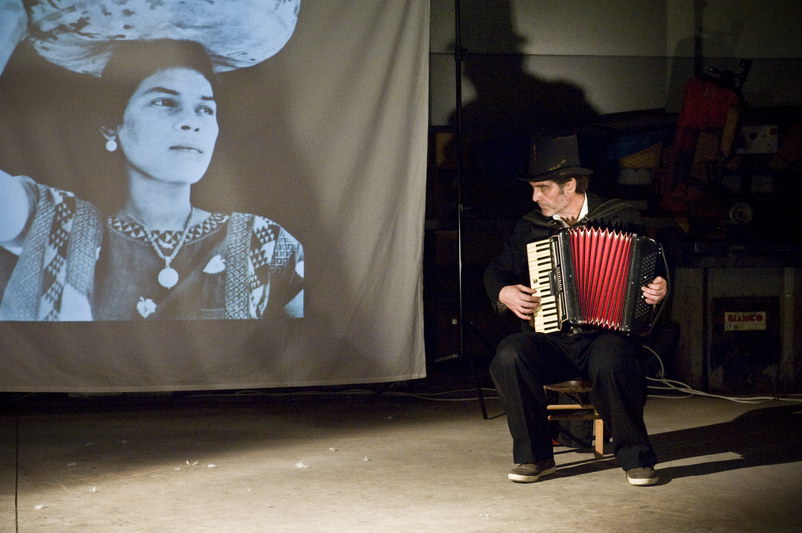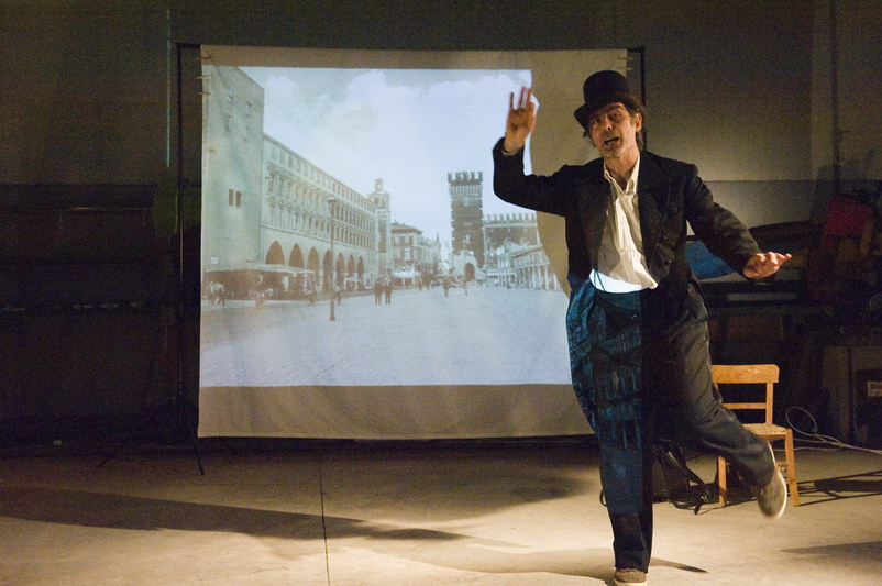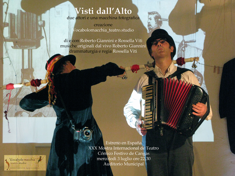 […] creazione scenica e progetto visivo: Vocabolomacchia teatro.studio di e con Roberto Giannini e Rossella Viti musiche originali dal vivo, scena Roberto Giannini drammaturgia per visioni e testi, regia Rossella Viti sabato 13 Giove h 21.00 officine Beranzoni Visti dall’Alto è un viaggio teatral fotografico nei luoghi e nei paesaggi, che siano un volto, una casa o una città. E’ un percorso ingordo che non si accontenta del teatro ma mentre racconta di fotografia ne fa pratica, esercizio di scena, visione e memoria. Un gioco teatrale che entra nelle emozioni del fotografare e del farsi fotografare, per raccontare agli spettatori, e con gli spettatori, il mondo che ci sopravvive, quello delle immagini. Trovarsi in viaggio al centro di un fotogramma, nel tempo del teatro, nello spazio di una fotografia, nei luoghi degli uomini e delle donne. Visti dall’Alto è un paesaggio disegnato con il lavoro degli attori, la presenza degli spettatori, immagini fotografiche proiettate e scattate, parte integrante della narrazione. Ogni allestimento è possibile, in sale, teatri, giardini, e in ogni luogo lo spettacolo porta con sé l’alchimia di una scena che si riproduce con la fotografia, riflettendo su se stessa. E’ la traccia, visibile, dell’attraversamento, che restituisce ad ogni contesto la sua unicità…leggi tutto […]