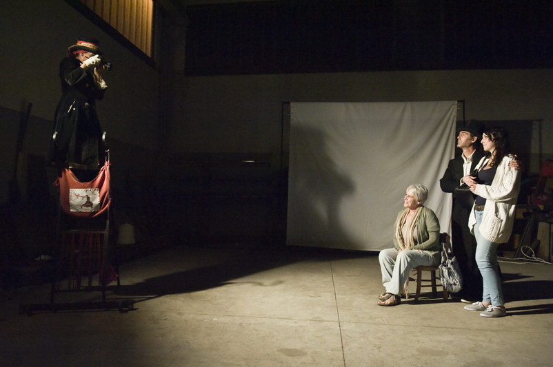 Visti dall’Alto è un paesaggio disegnato con il lavoro degli attori, la presenza degli spettatori, immagini fotografiche proiettate e scattate, parte integrante della narrazione. Ogni allestimento è possibile, in sale, teatri, giardini, e in ogni luogo lo spettacolo porta con sé l’alchimia di una scena che si riproduce con la fotografia, riflettendo su se stessa. E’ la traccia, visibile, dell’attraversamento, che restituisce ad ogni contesto la sua unicità.